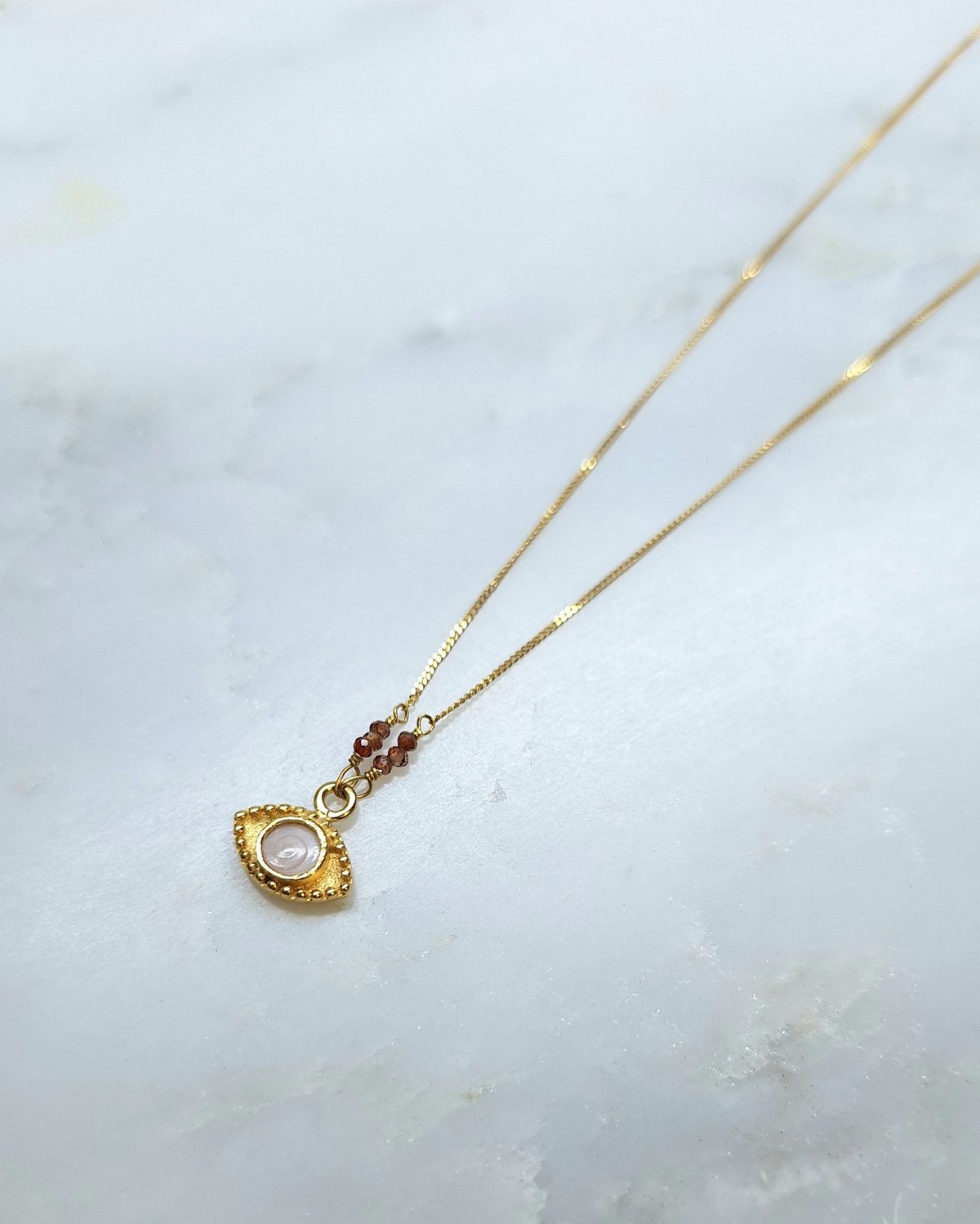 Collection précieuse et fine autour de l'Œil de Sainte Lucie. Disponible en Argent 925 et Argent 925 Plaqué or 24C/5 microns (dorure française). Opercules certifiés authentiques, naturels et corses.
